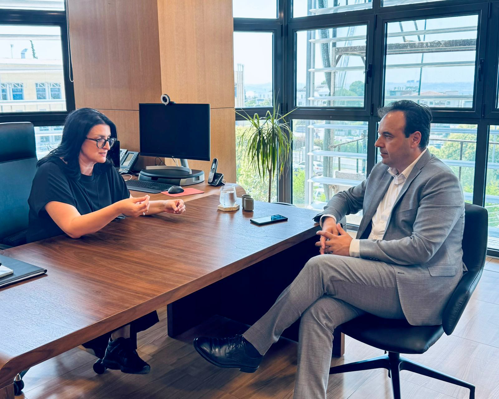 Ο κ. Παπαστεργίου είχε επίσης την ευκαιρία να συνομιλήσει με τους ερευνητές του Ινστιτούτου, κ. Παντελή Νατσιάβα και κ. Φώτη Ψωμόπουλο. Στο πλαίσιο της συζήτησης, εξετάστηκαν δυνατότητες συνεργειών μεταξύ του Υπουργείου Ψηφιακής Διακυβέρνησης και του ΙΝΕΒ, με στόχο την ενίσχυση της καινοτομίας και την αξιοποίηση της ψηφιακής τεχνολογίας στον τομέα των δεδομένων υγείας.