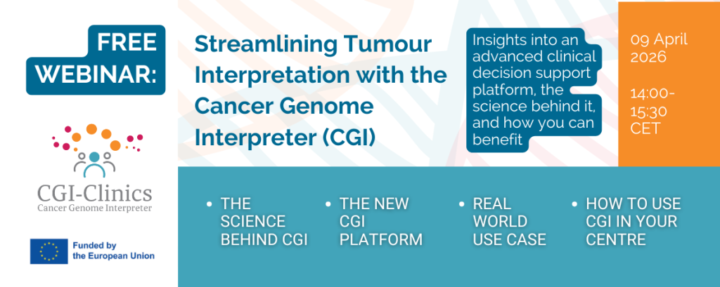 Πληροφορίες για μια προηγμένη πλατφόρμα υποστήριξης κλινικών αποφάσεων, την επιστήμη πίσω από αυτήν και πώς μπορείτε να επωφεληθείτε Πέμπτη 09 Απριλίου 2026, 14:00 – 15:30 CET. Πατήστε εδώ για να κάνετε δωρεάν εγγραφή Το Cancer Genome Interpreter (CGI) που αναπτύχθηκε από το έργο CGI-Clinics μέσω μιας διαδικασίας συνδημιουργίας με πάνω από 10 ευρωπαϊκά νοσοκομεία, είναι […]